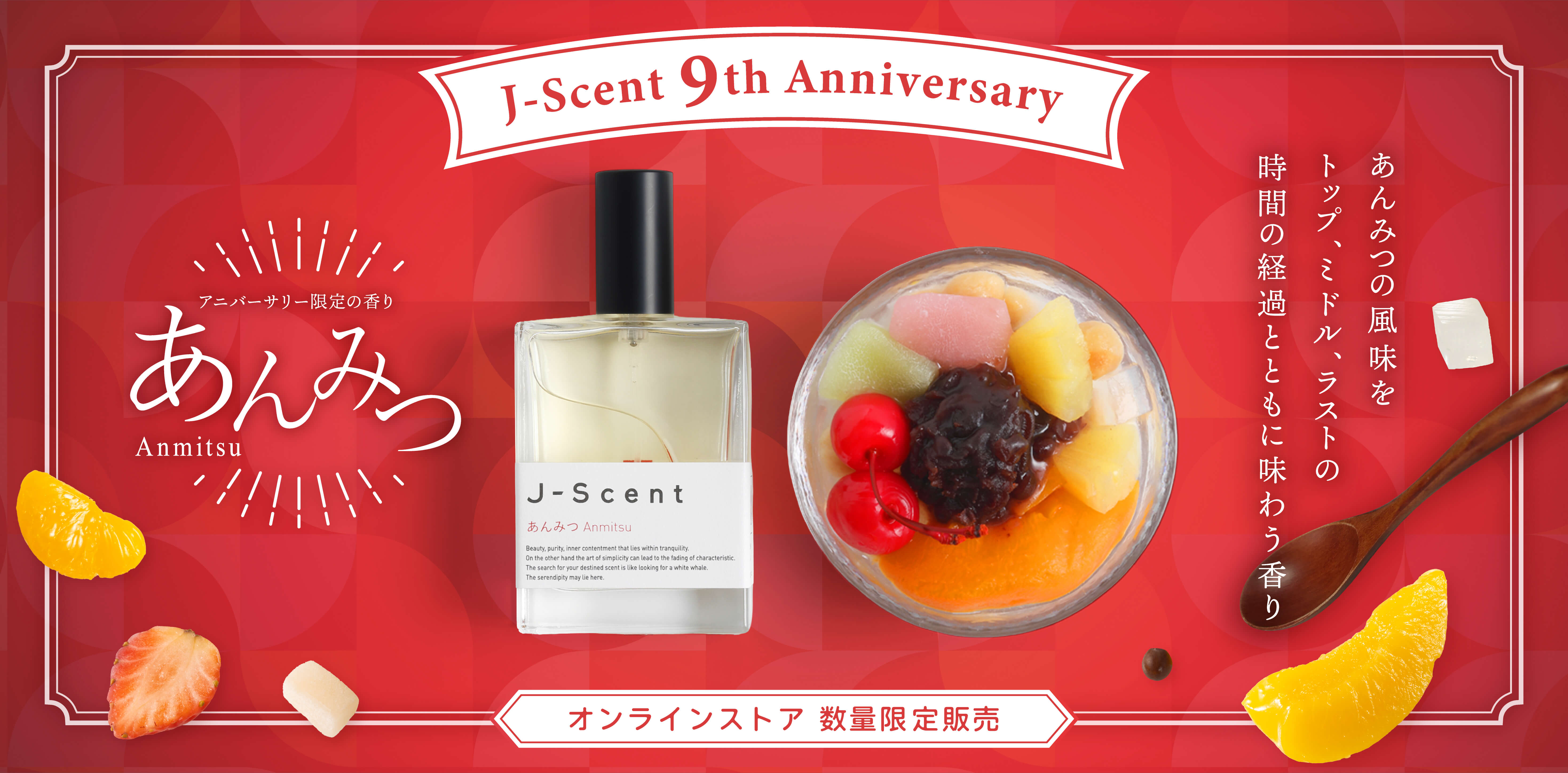 世界に誇れる日本の美意識、独特な伝統、文化、 そして今を生きる私たち日本人の暮らしに溶け込んできた香りを 「和(あ)える」ことにより生み出したメイド・イン・ジャパン・フレグランス。 私たちの記憶に残る情景を呼び起こす いつかの、どこかの・・・新しい香り J-Scent